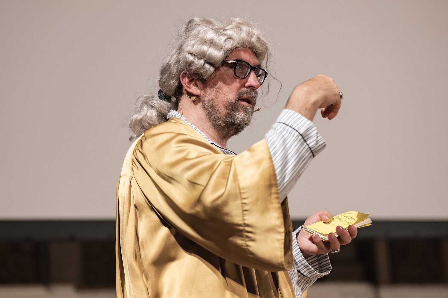 Luca Scarlini, con la sua sapiente ironia, sale sul palco per raccontarci questa storia, fra letture sceniche, analisi critiche e citazioni colte. Con la precisione dello storico e l’arguzia del comico, lo scrittore veste i panni del narratore, del capocomico e dell’attore per dimostrare, ancora più che mostrare, al pubblico come Mantova sia stata il teatro di prova di quelle commedie che hanno cambiato per sempre il modo di fare teatro. Ad accompagnarlo le interpretazioni di Giovanni Franzoni e Maria Grazia Mandruzzato, a cui è affidato invece il compito di ridare voce ai personaggi goldoniani. Nell’anno che trascorre in città, costretto a letto dall’influenza, Goldoni compone in ordine cronologico La vedova scaltra, La Pamela nubile, L’adulatore. Sono queste le tre opere su cui si concentra la prima parte dello spettacolo e che dobbiamo immaginare essere state rappresentate per la prima volta presso il Teatro Vecchio in Largo Vigili del fuoco 1, oggi caserma dei pompieri.