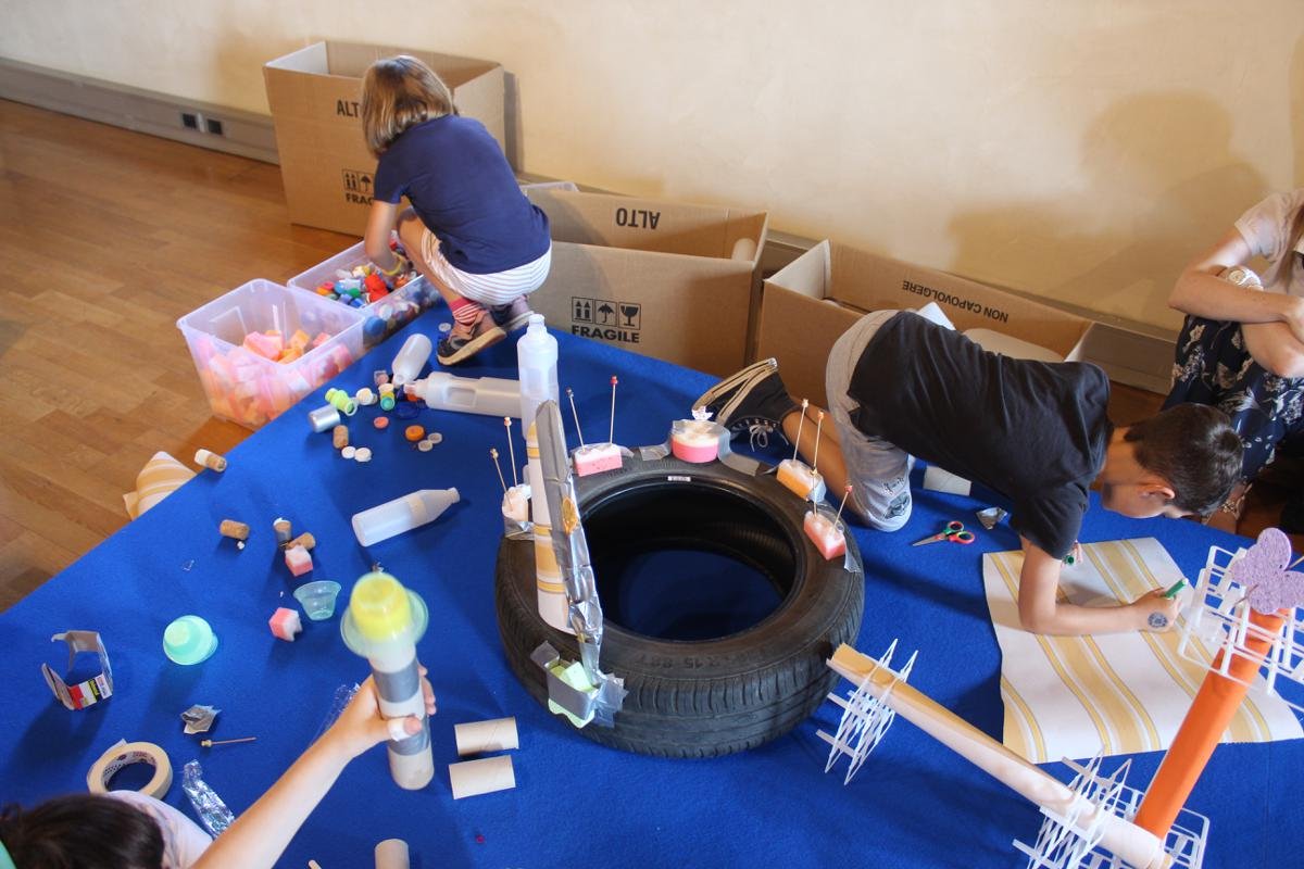 Andrea Anastasio accoglie i visitatori con Un mondo assieme , un palcoscenico di oggetti comuni in attesa di prendere nuova vita. Qui tutto è in potenza, tanto che modellini di barche fatte di cucchiaini si accompagnano a futuristiche navicelle e tavoli volanti.