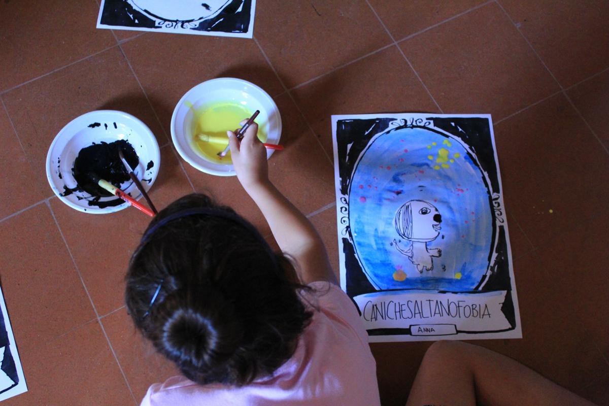 Ciascuno di noi ha almeno una paura da sconfiggere, qualcosa che gli fa venire i brividi o che lo mette a disagio. Insieme a Francesco Fagnani i bambini hanno parlato delle proprie paure analizzandole una ad una e capendo come sconfiggerle giungendo alla conclusione che il modo migliore per sbarazzarsene è la fantasia! Armandosi di matite, pennarelli, tempere e pastelli, i piccoli eroi hanno rappresentato le loro paure dette "preferite" sotto forma di disegno. Le fobie hanno lasciato spazio alla creatività e in un istante sui fogli dei bambini si vedevano paure come la "noiafobia", la "canichesaltanofobia", la "medusafobia" e la "nullafobia". Un laboratorio all'insegna dell'immaginazione e del divertimento che ha permesso ai partecipanti di diventare dei veri e propri amici della paura.