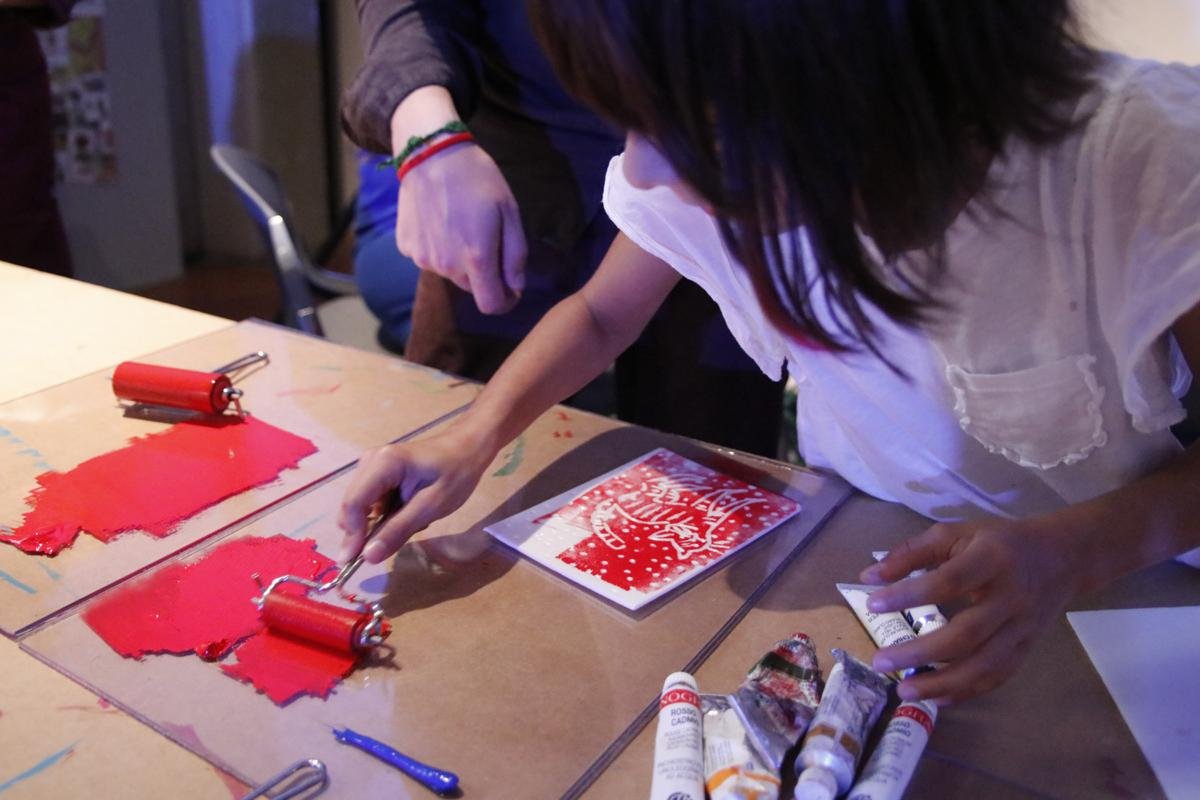 Si inizia incidendo un'immagine su un cartoncino di polistirene. Incidere? Proprio così. In questo caso non serve avere la mano leggera anzi, più il solco è profondo meglio è, ovviamente senza bucare il cartoncino. Come sempre i bambini hanno dato sfogo alla propria fantasia, creando volti, animali, fiori o bellissimi paesaggi. Ed è subito colore! Con l'aiuto di piccoli rulli, Andriy e Romana stendono la tempera aclirica sul polistirene, lo girano, lo premono su un foglio... e il gioco è fatto! Sulla carta rimane una stampa perfettamente uguale al disegno originale, solo capovolta e con i bordi bianchi. I piccoli spettatori rimangono a bocca aperta: come si fa a fare un disegno così strano? Ma ogni dubbio scompare appena vengono distribuiti cartoncini e matite.