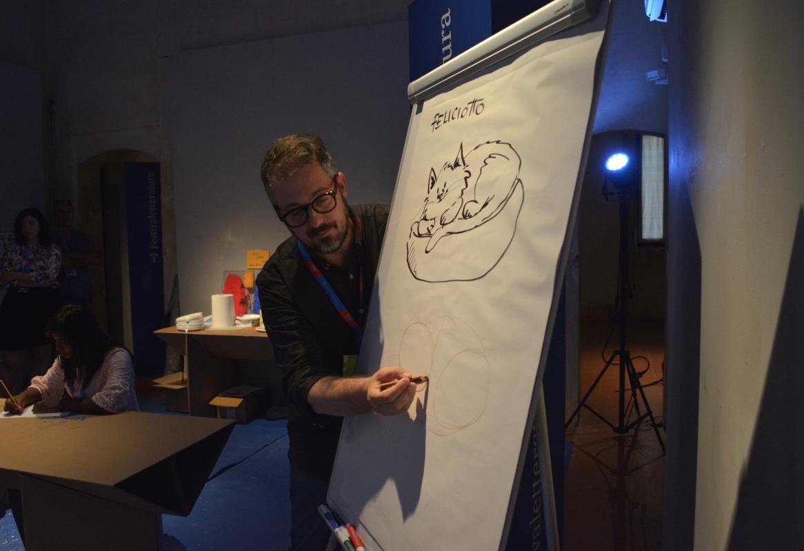 Andrea Musso mostra ai bambini come si disegna un gatto, inizia mostrando a loro delle normalissime figure geometriche che poi però assemblate in un certo modo creano magicamente il famoso gatto killer. Andrea molto allegramente mostra che il modo giusto per disegnare un gatto è quello: di cominciare con uno schizzo veloce ed poi piano piano di cominciare a fare i dettagli fino a metterci sopra il colore .