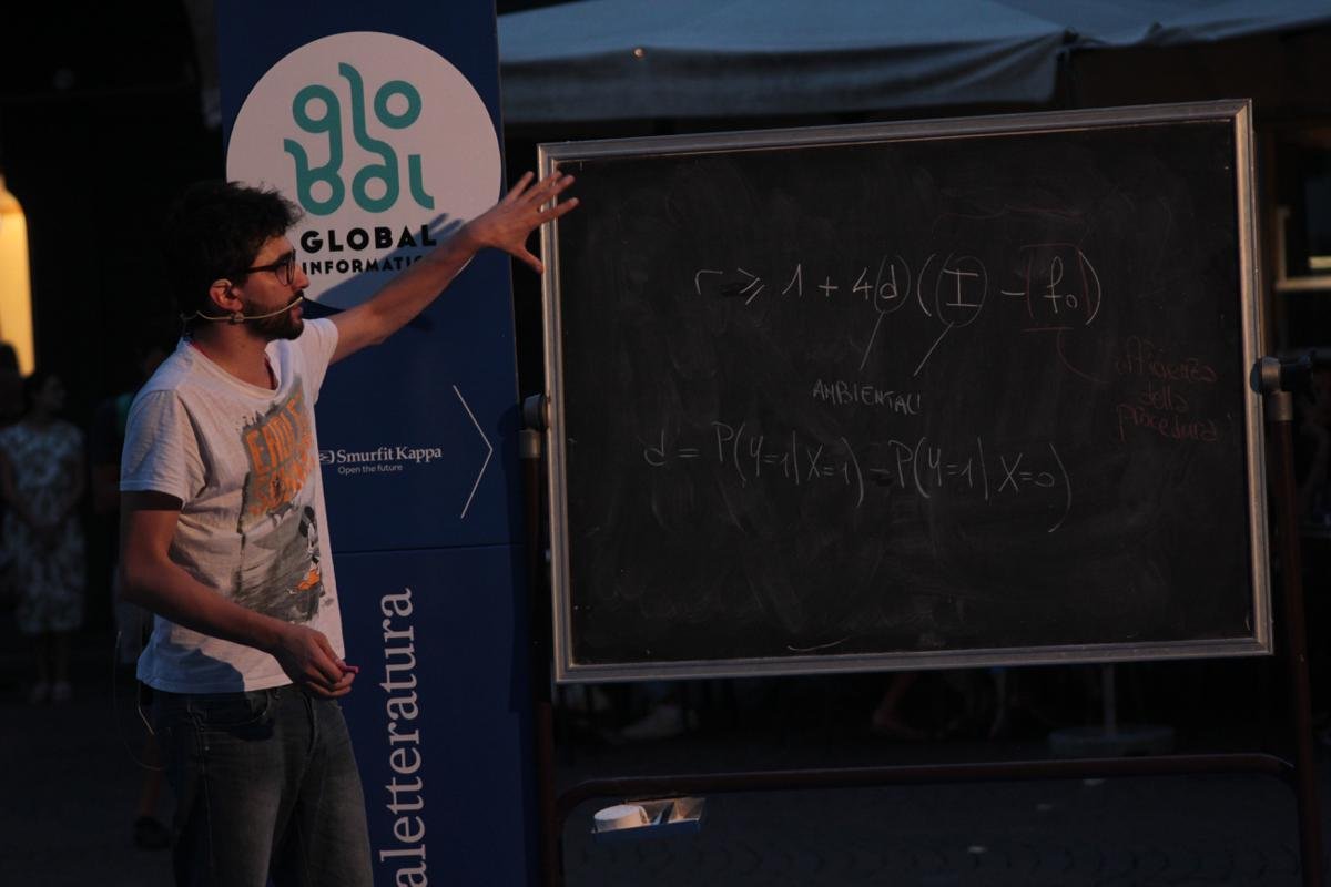 Di equità algoritmica si è continuato a parlare in Piazza Mantegna nella lavagna delle 19.15 “Anche gli algoritmi hanno pregiudizi?”, in cui Mattia Galeotti ha ampliato la prospettiva introdotta nella contaminazione. Gli algoritmi sono, infatti, spesso utilizzati per alcune indagini di carattere sociale , come: la sicurezza di alcune zone della città, l'assunzione di nuovi lavoratori, la scelta di chi è meritevole di accedere al prestito. Questi algoritmi sono però portati, per la natura dei dati che vengono loro affidati, a compiere alcune discriminazioni . Attraverso l'illustrazione di casi in cui gli algoritmi hanno generato discriminazioni e la spiegazione di una formula matematica che collega due diverse definizioni di equità algoritmica , il pubblico ha potuto comprendere il messaggio: non è corretto credere che la scienza sia solo una descrizione di fenomeni, al contrario essa è fortemente correlata con la dimensione politica e sociale della nostra vita.