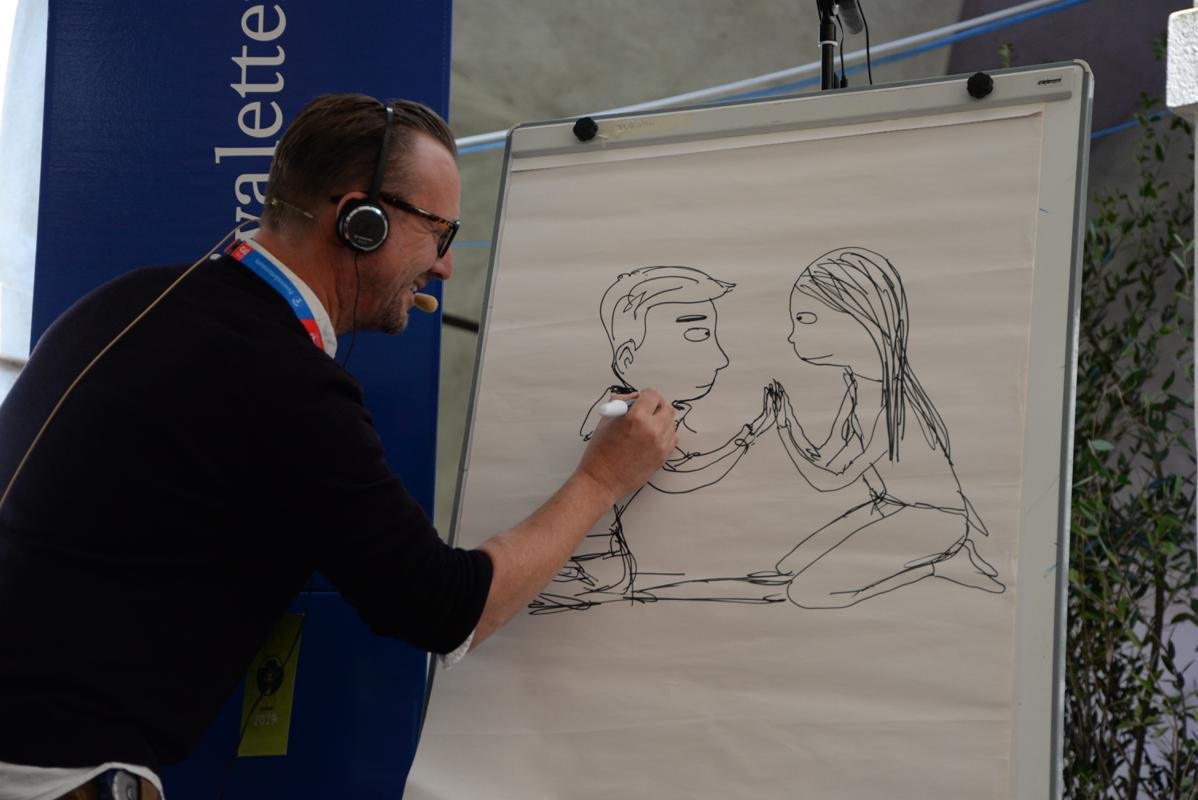 La scrittrice Annette Herzog e l'illustratore Rasmus Bregnhoi sono stati invitati a parlare del loro particolare libro D'amore e altre tempeste , un graphic novel che racconta dell'amore visto da due adolescenti. Il libro è diviso a metà, di cui una parla di una ragazza: Viola, e l'altra di un ragazzo: Storm. I due si piacciono ma non hanno il coraggio di dirselo e in questa storia viene descritto come l'amore cambia prospettiva a seconda di chi lo prova.