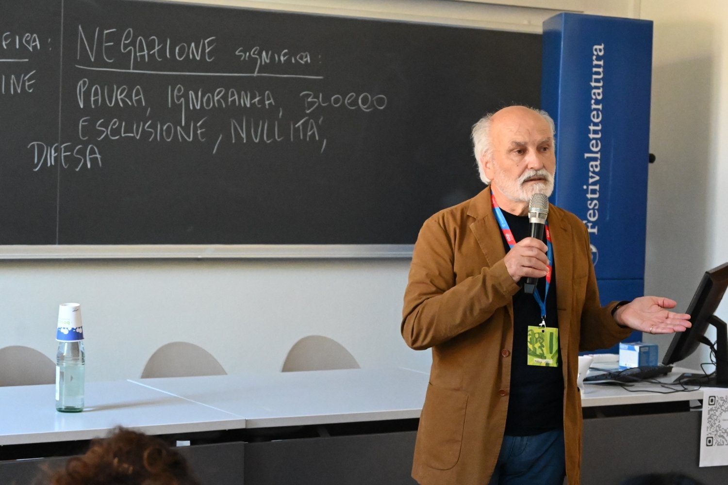 Chiusura, solitudine, insensibilità, paura, ignoranza, difesa, sono solo alcune delle parole che vengono alla mente pensando ai concetti di indifferenza e negazione. «Se il legame sociale è così in crisi, come stiamo?» si è chiesto Ugo Morelli, osservando la lavagna ricca di suggestioni dal pubblico. Anche solo soffermandosi su queste parole, risulta evidente il forte legame che questi temi hanno con la nostra contemporaneità. In un mondo dominato dal neoliberismo individualistico, in cui ognuno è una monade leibniziana, diventa paradossale l’esistenza dell’individuo stesso - per definizione ente che si autodefinisce, che basta a se stesso - poiché condannato ancor prima del taglio del cordone ombelicale a dipendere dagli altri. Già dalla quindicesima settimana di gestazione, il feto riesce a mettere a punto i suoi sensi grazie alla risonanza con la madre, tramite per il mondo esterno.