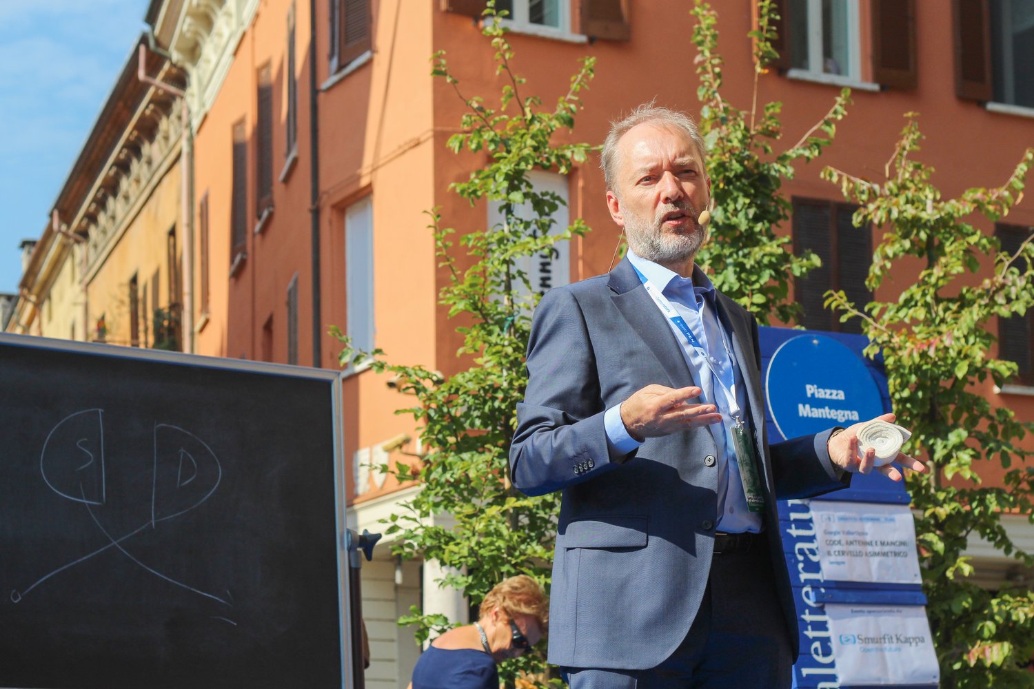 Ce lo spiega Giorgio Vallortigara , neuroscienziato, in una lavagna in Piazza Mantegna .