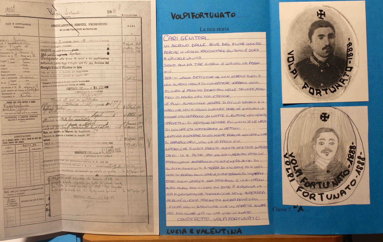 I laboratori di ricerca, in questi anni, sono andati avanti in più comuni del mantovano, compreso quello di Castel Goffredo, che ora mette a frutto questa esperienza in un toccante resoconto a opera dei ragazzi delle classi V della Scuola Primaria locale. Con VITE DI SOLDATI , dal 15 al 17 aprile 2016 presso la Sala Bazzani di Castel Goffredo , si potrà entrare nel vivo dei frammenti di storie dei caduti castellani, che furono ben 95 tra morti e dispersi, oltre a reduci, feriti, mutilati, orfani, vedove. Per ricordare quei dolorosi fatti, nel novembre 2015 era già stata organizzata la mostra “La Grande Guerra a Castel Goffredo" con documenti dell’Archivio storico comunale "Lorenzo Bellini", nella quale i ragazzi delle classi V della Scuola Primaria hanno potuto vedere, oltre ai documenti conservati nell’archivio locale, anche i fogli matricolari dei soldati castellani caduti e dispersi proprio accedendo alla banca dati de "I soldati negli archivi". Prendendo spunto da questi particolari documenti , dove è riportata la storia militare di ciascun soldato, immedesimandosi nelle vite di quei militari chiamati a combattere, i ragazzi delle classi V della Scuola Primaria di Castel Goffredo hanno scritto in forma narrativa pagine di diari, lettere, testi poetici che raccontano frammenti di storie dei caduti Castellani. Questi scritti, insieme al foglio matricolare e ad un disegno, formano un lapbook per ciascuno dei caduti castellani e, tutti insieme, sono esposti nella mostra VITE DI SOLDATI , aperta nei seguenti orari: presentazione Classi V A, B, C, venerdì 15 aprile, ore 10.30; presentazione Classi V D, E, F, G, sabato 16 aprile, ore 11.00; apertura mostra: sabato 16 aprile, ore 16-19, domenica 17 aprile, ore 9.00-12.00.