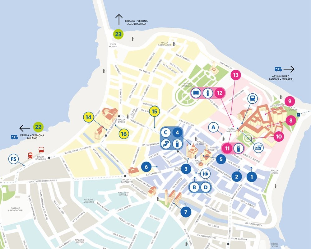 RAGGIUNGERE MANTOVA: Nella sezione "mobilità" del nostro sito trovate tutte le informazioni per raggiungere Mantova e per muoversi in città.