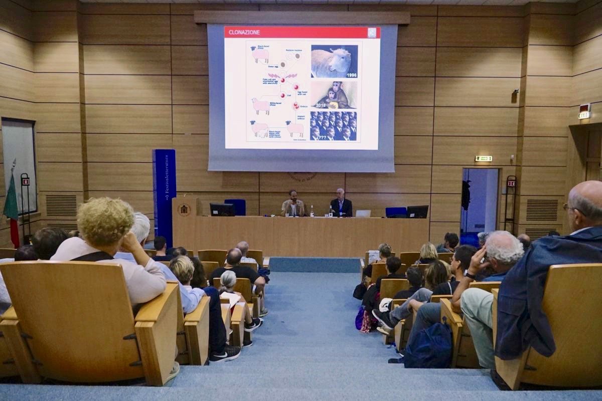Ci sono altri racconti che parlano di mutazioni genetiche – oggi più che mai al centro del dibattito scientifico – o della moltiplicazione delle esperienze per mezzo della realtà virtuale, che rischia tuttavia di far morire le esperienze reali. Alla fine dell’intervento si avvia infatti un confronto molto acceso col pubblico sui pericoli di queste nuove tecnologie, che dallo stesso Levi vengono prima presentate sotto la luce positiva del progresso e poi analizzate nelle loro problematiche conseguenze. « La scienza produce conoscenza e la conoscenza produce tecnologie », afferma Pacchioni: senza certe tecnologie non saremmo in grado oggi di sostenere la presenza di sette miliardi di persone sulla terra, ma non esiste attività umana totalmente priva di rischi. Sul piano politico, un rischio molto concreto che interessa a Pacchioni è l’approfondimento del divario sociale: la creazione di una società divisa in ricchi tecnosapiens , che potranno permettersi vite lunghissime con tutti i confort di queste tecnologie, e in veterosapiens più poveri , impossibilitati ad accedere alle costosissime invenzioni rivoluzionarie. La letteratura può servire in tal senso come potente strumento di analisi per mettere in guardia l’umanità e lanciare un messaggio forte.