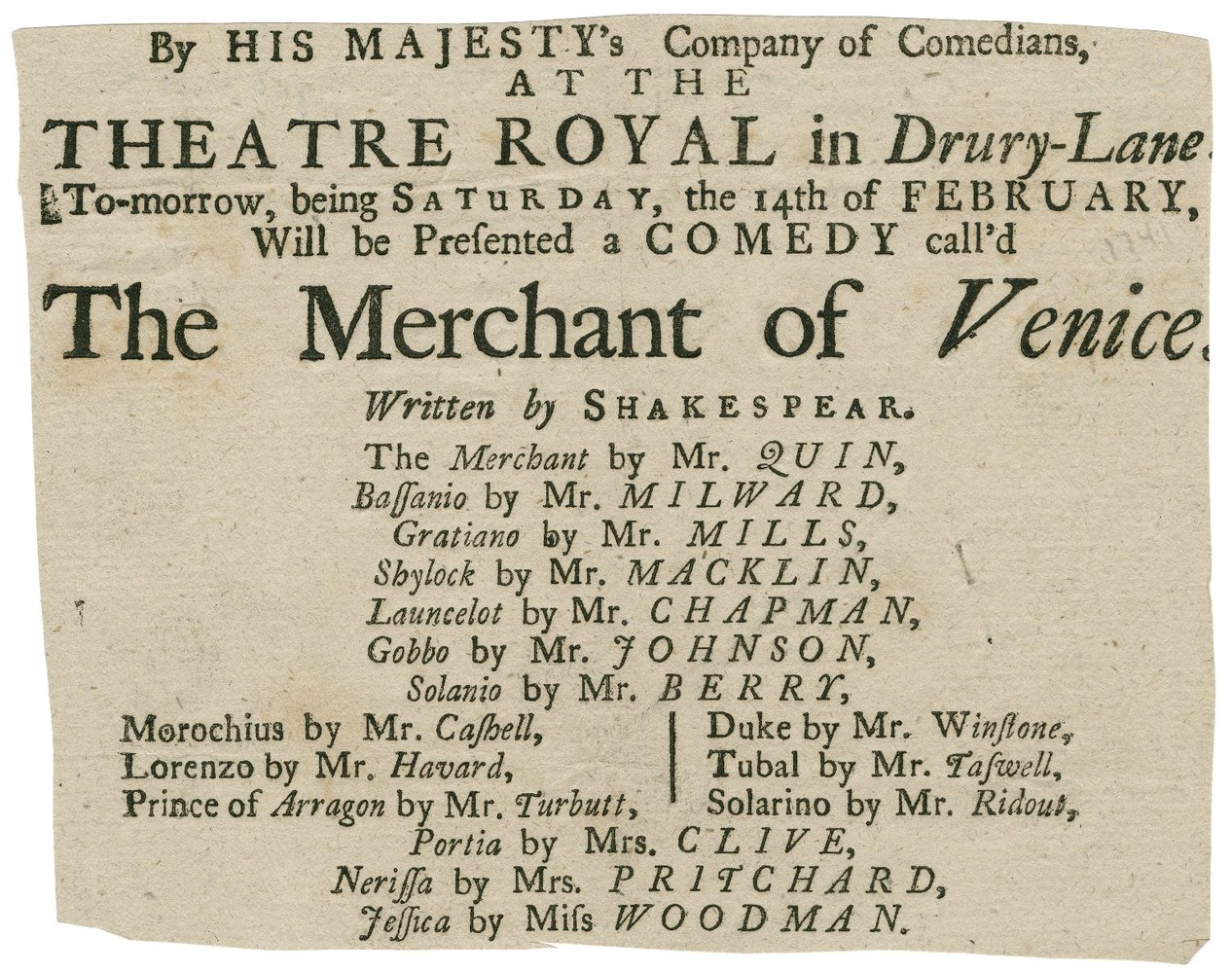 Jacobson si è confrontato invece con Il m ercante di Venezia , dando la parola in prima persona al protagonista Shylock, probabilmente una delle figure più affascinanti di tutto l'universo shakespeariano. Jacobson trasporta il mercante nel ventunesimo secolo, e lo rende figura reale, contemporanea, non più un fantasma indistinto, rendendo così ancora più struggenti i conflitti insiti nei protagonisti della storia e il sovrastante senso della pietà umana.