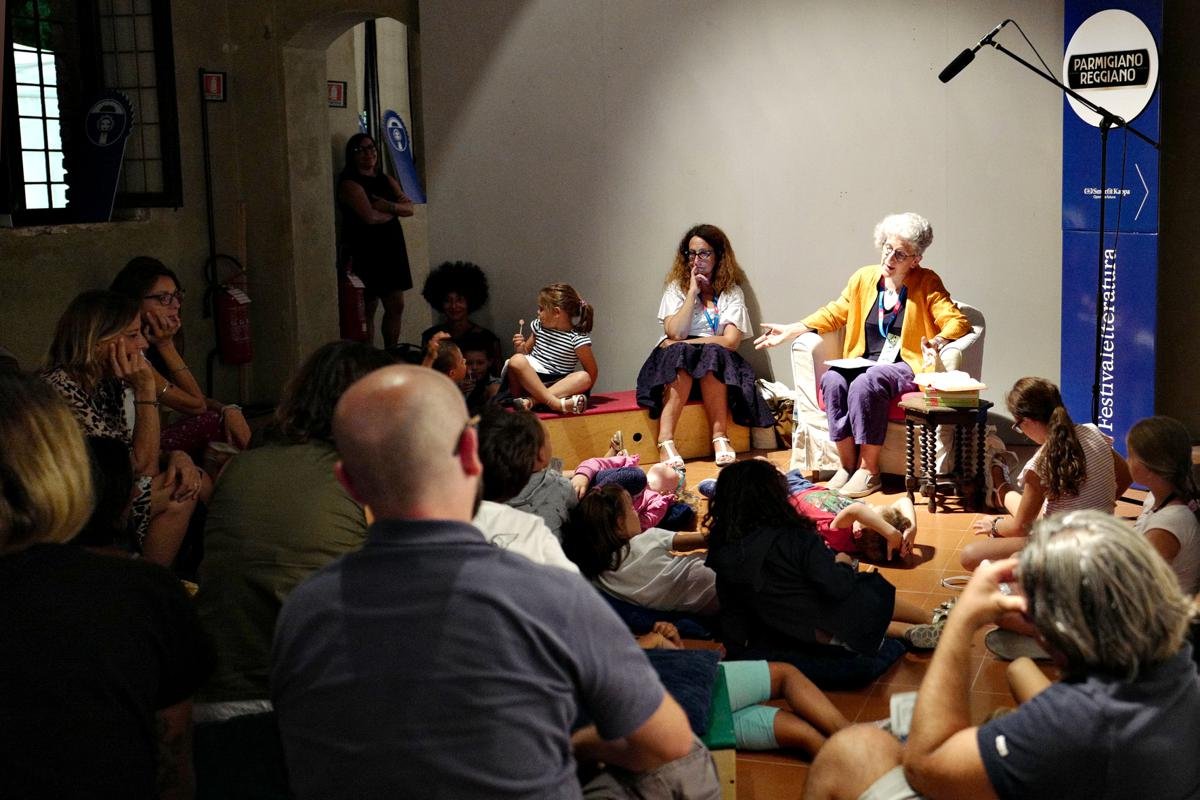Giusi Quarenghi , raccontando una delle tante storie di Giona, è riuscita miracolosamente a far stare svegli i bambini presenti all'evento - si sa che i piccoli si addormentano molto presto.