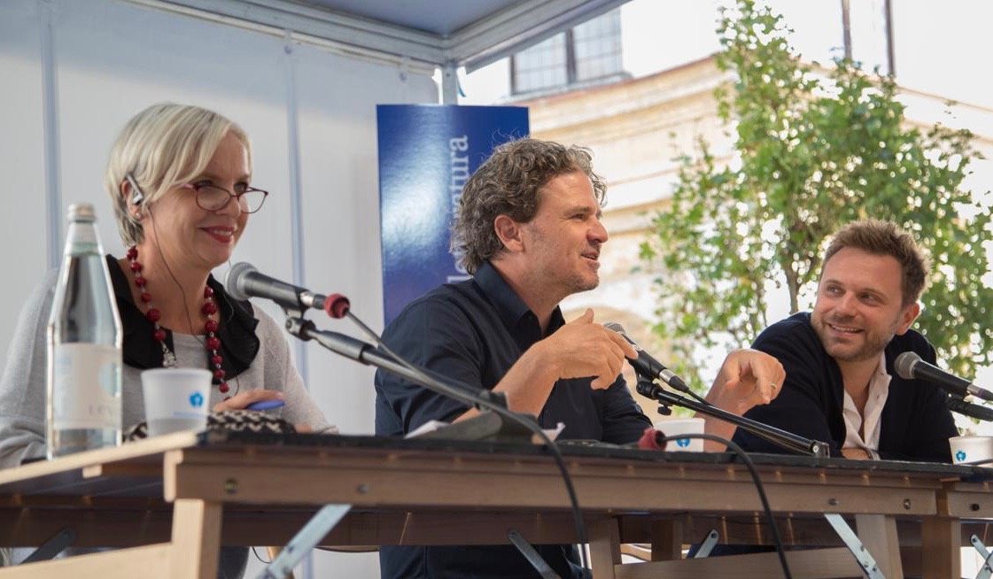In circa venti anni da romanziere, giornalista e saggista, Dave Eggers ha certamente proposto un nuovo modo di scrivere , affrontando temi enigmatici con uno stile ironico e coraggioso. Paolo Giordano lo intervista in una Piazza Castello divertita, stimolando lo scrittore americano a discutere della sua nuova opera La parata e a collegarsi alla situazione politica americana attuale. Si tratta di un libro perturbante ma compatto, capace di congiungere le due anime di Eggers : una che ha sempre guardato al di fuori (in questo caso si tratta di un luogo non ben identificato in Africa) ed un’altra più ancorata all’ hic et nunc e alle sue protrazioni verso un futuro incerto e pericolosamente vicino. Questo duplice slancio è contenuto in poche pagine, nonostante la tentazione di imbottire ulteriormente il prodotto finito, ammette lo scrittore, abbia incontrato più volte i suoi pensieri.