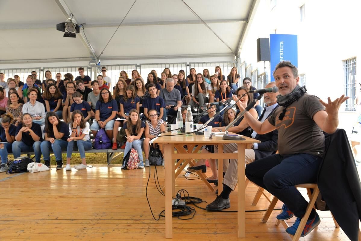 «Ha senso leggere ad alta voce ai ragazzi?» Questa è stata la sfida lanciata dalla presentatrice Simonetta Bitasi agli ospiti Arturo Pérez-Reverte e Davide Enia.