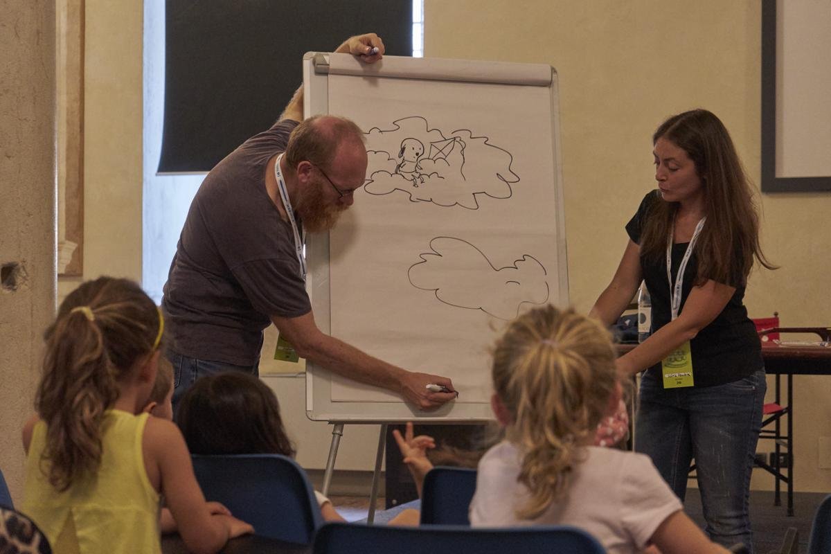Durante l’evento l’autrice Silvia Vecchini e il disegnatore Sualzo hanno insegnato ai bambini ad «ascoltare con gli occhi» raccontando loro una storia attraverso le immagini. Gli autori hanno mostrato il libro Una cosa difficile e successivamente hanno cercato di capire insieme il significato delle immagini.