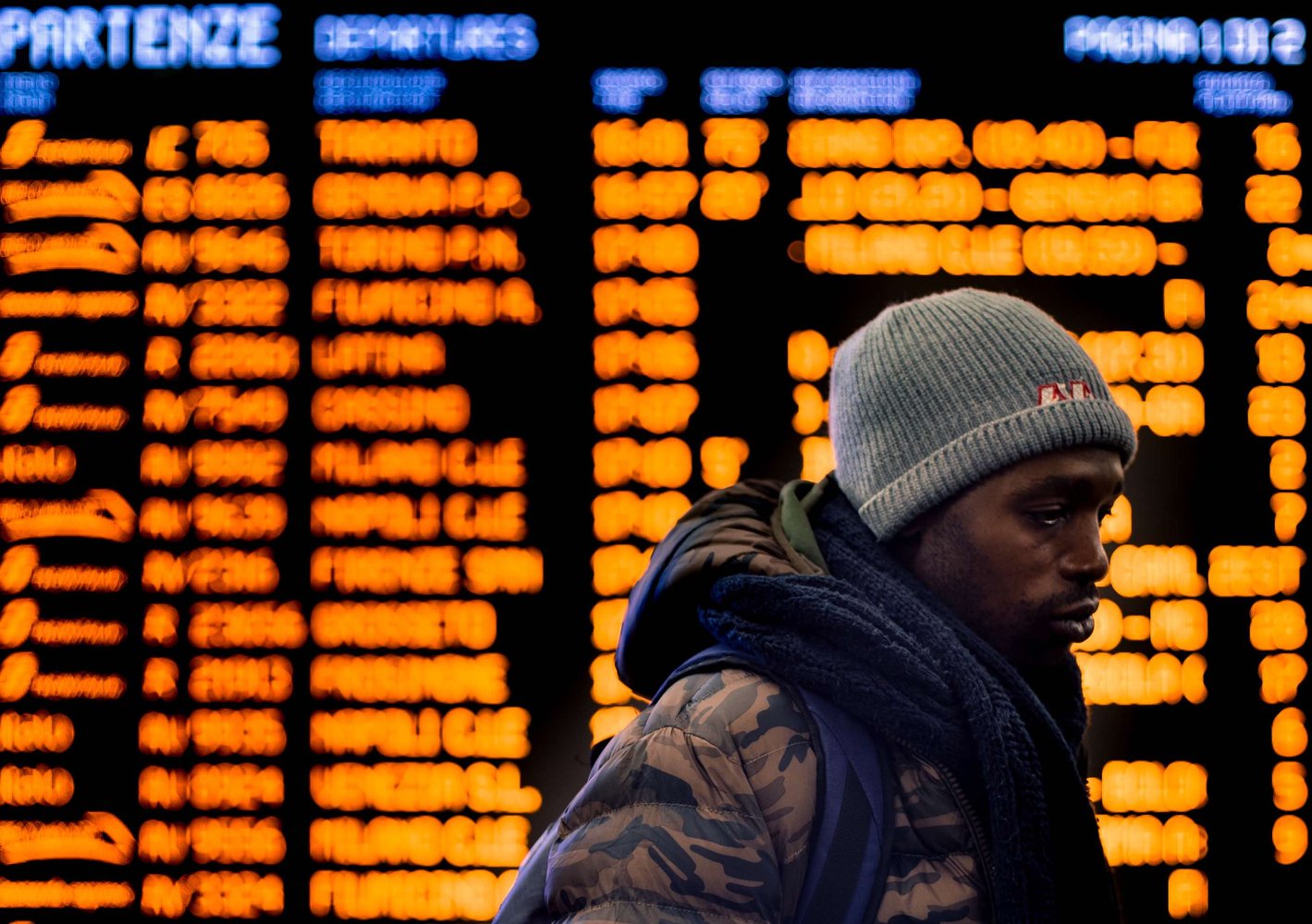Nel frattempo il succo d’arancia è finito, il bicchiere si è svuotato. Adambosh deve recuperare la macchina per poi andare a lavoro, ci salutiamo davanti il tabellone delle partenze: