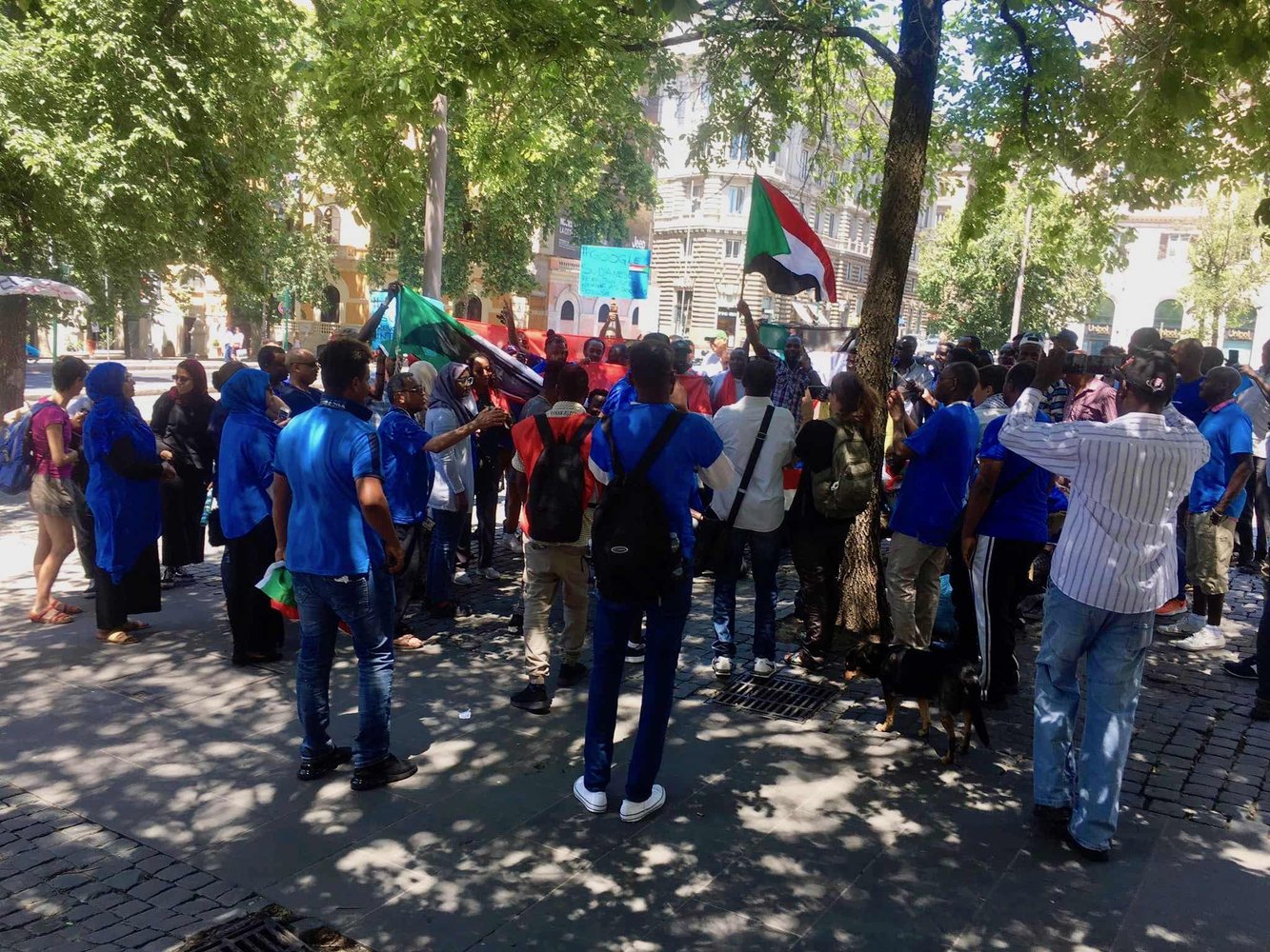 a Roma, davanti a Montecitorio e in Piazza dell’Esquilino, in tutte quelle manifestazioni organizzate a sostegno della rivoluzione che, contemporaneamente, esplodeva nelle vie della capitale sudanese.