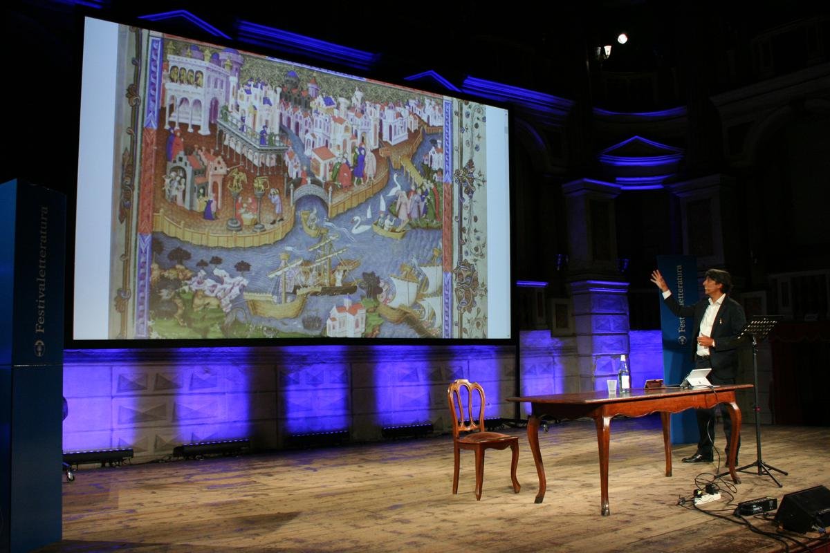 «Dobbiamo andare in Cina e tornare indietro in un’ora scarsa». Così esordisce Giulio Busi , autore di Marco Polo , l’ultimo di tre lavori su celebri italiani: dopo aver parlato di Michelangelo e di Lorenzo de’ Medici, racconta le vicende dell’europeo più celebre in Oriente, accomunato agli altri due dalla grande curiosità e dal fatto di essere italiano. Nel suo intervento si propone di parlare dei viaggi del famoso mercante veneziano, di cui si è preso a cuore la storia al punto che spesso lo chiama semplicemente Marco.