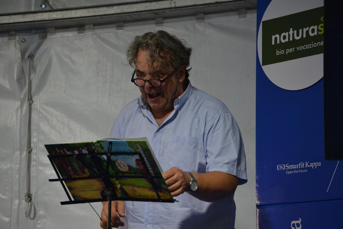 Ma chi è? Il Gruffalò! Una mostruosa ma simpatica creatura illustrata da Axel Scheffler . È grande e grosso, è coperto di pelo e pare che mangi ogni animale che incontra, ma ha paura di un piccolo topolino. Questo mostro fifone è molto amato dai bambini, che oggi hanno accolto Scheffler con grande entusiasmo. E per loro grande gioia l'autore, aiutato dal bravissimo Pino Costalunga , ha narrato ben due storie su questa mostruosa creatura.