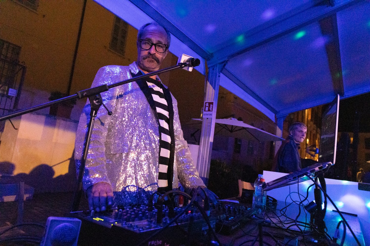 La musica cambia con noi, come cambiano i supporti e le abitudini d’ascolto. Ma la vera rivelazione arriva con l’esperimento di Ariele: un karaoke collettivo travolge Piazza Leon Battista Alberti. La giacca di paillettes luccica sotto i fari, uno shaker tintinna tra le mani, il microfono da TG locale diventa scettro di comando. Due schermi proiettano i testi: la folla esplode.